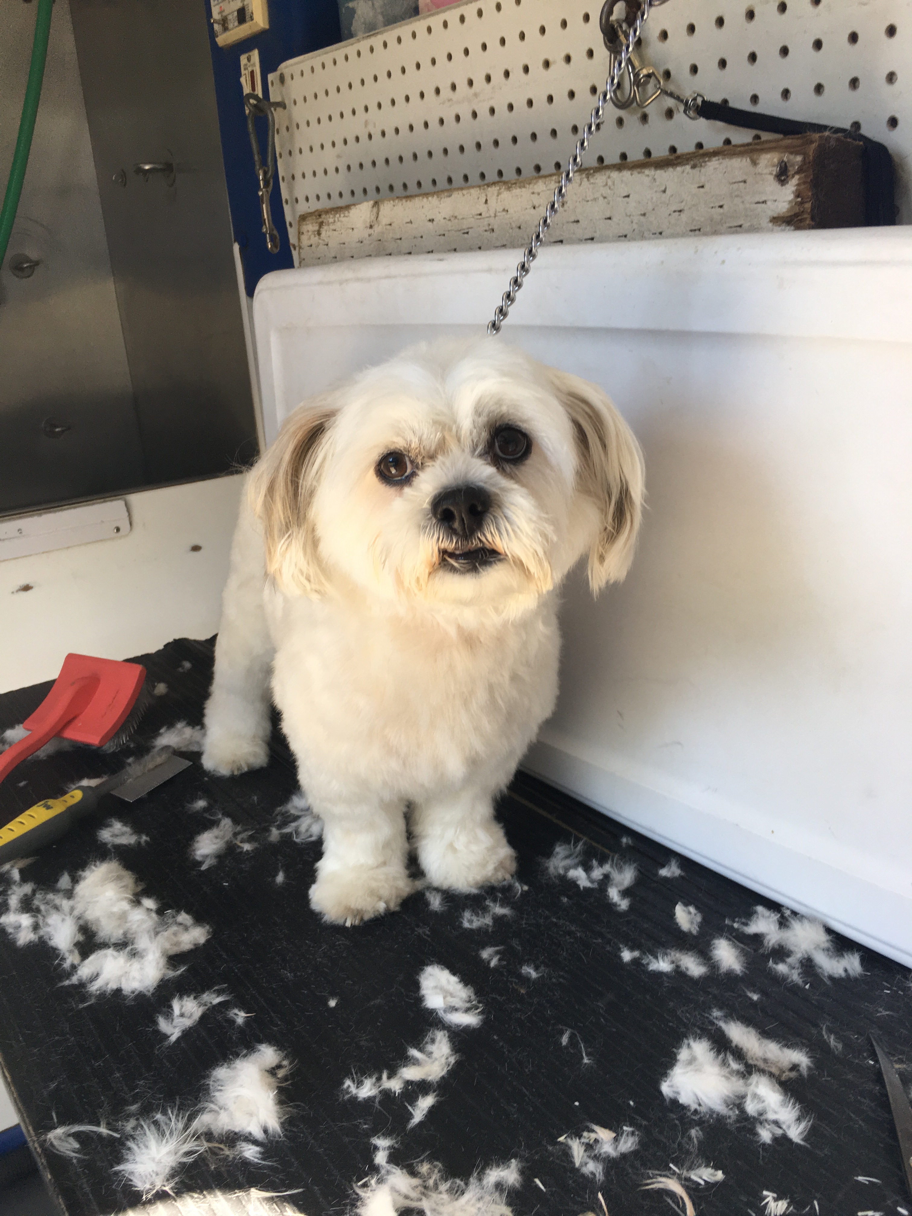 Includes sanitary trimming around the face/fanny/feet and a full service bath with nails, ears and other sanitary needs: